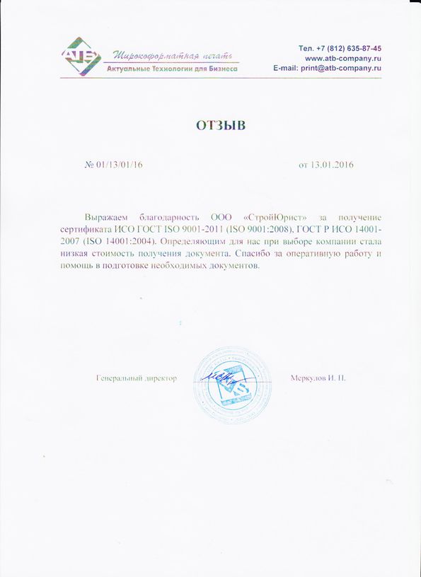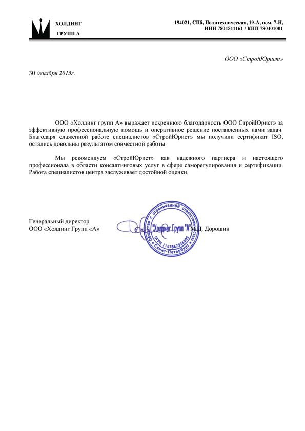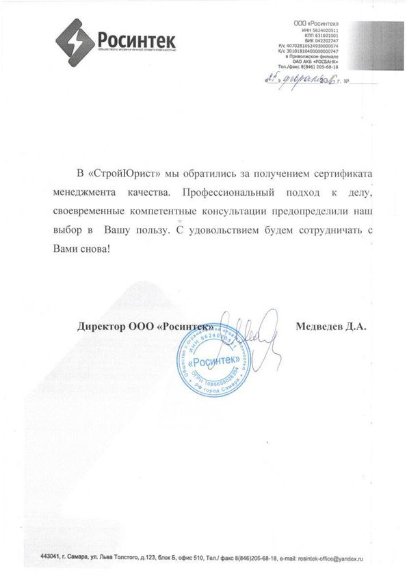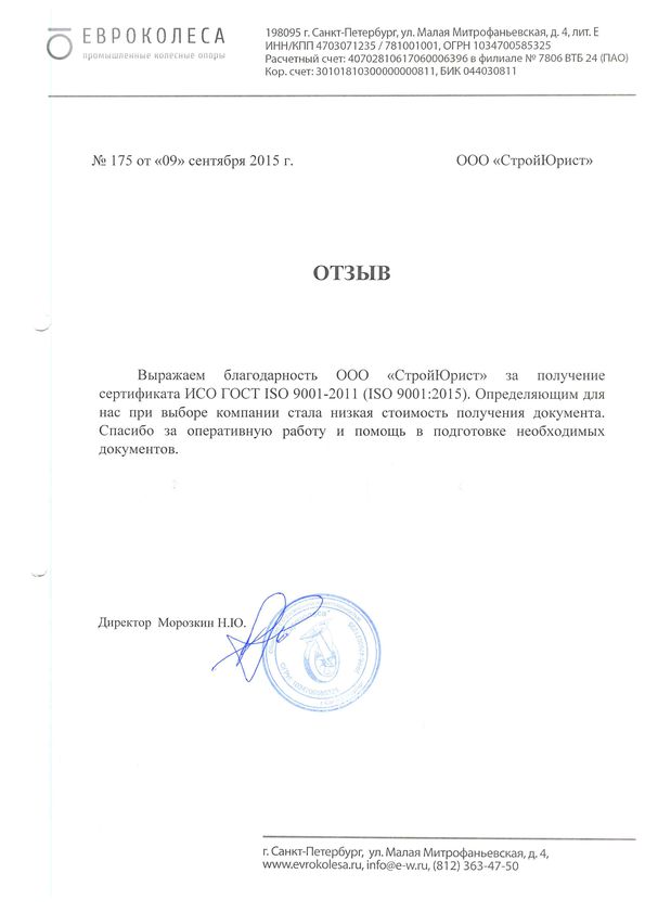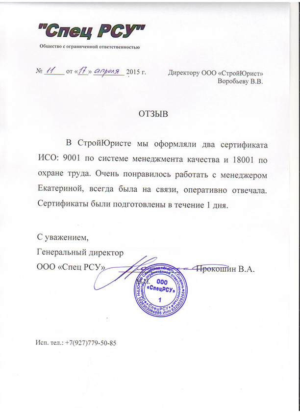 Отзывы клиентов "СтройЮрист" по ISO в Новороссийске