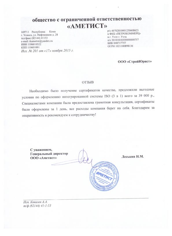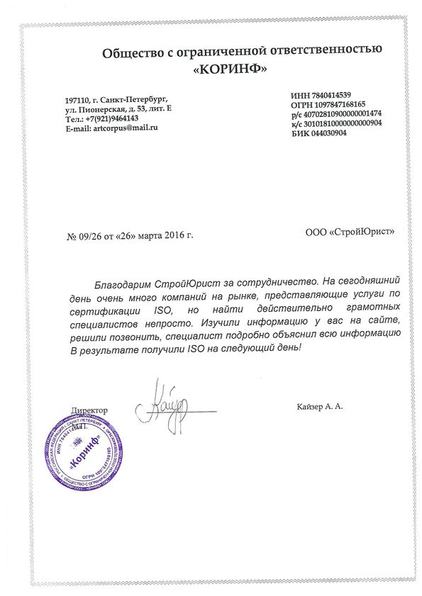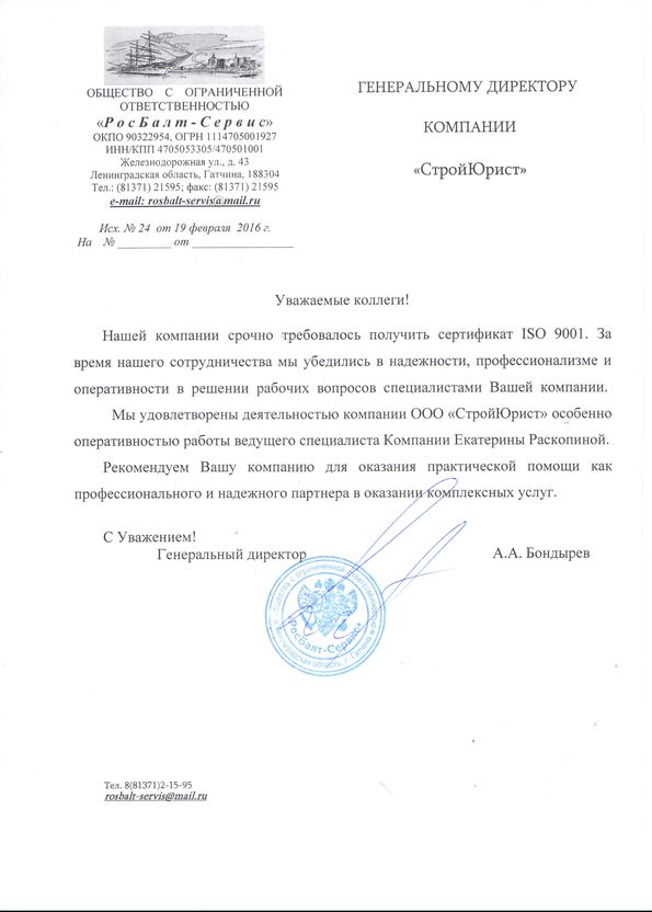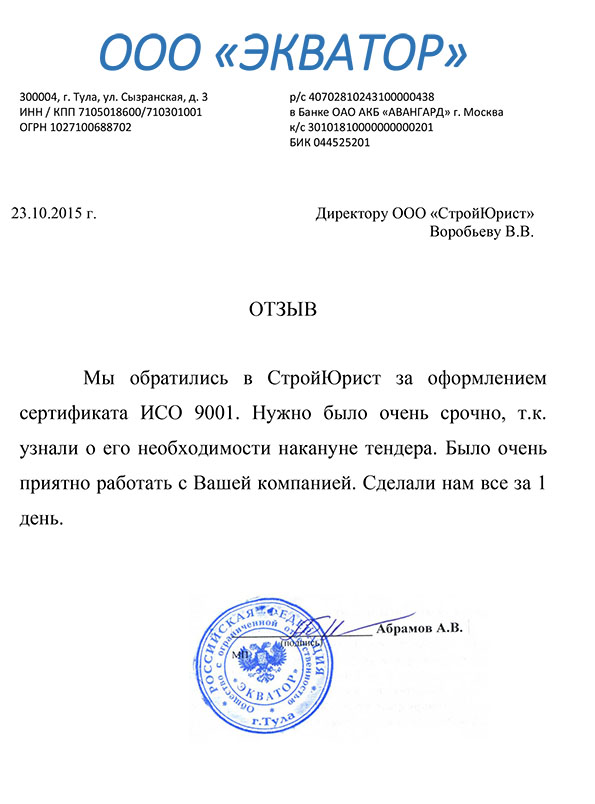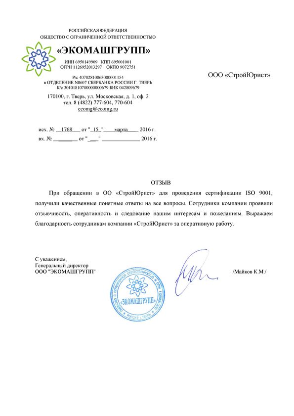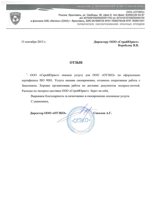 Отзывы клиентов "СтройЮрист" по ISO в Новороссийске