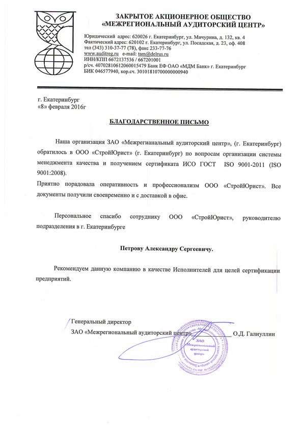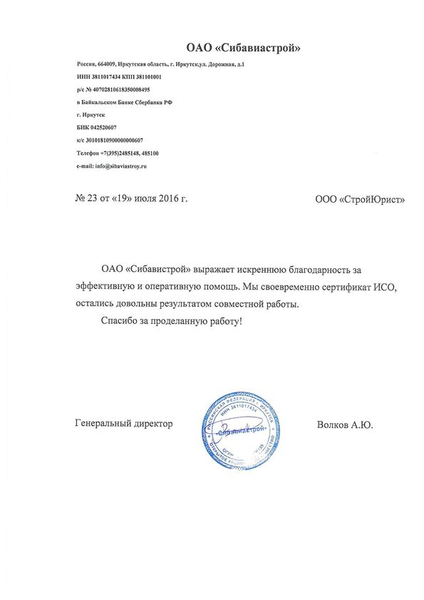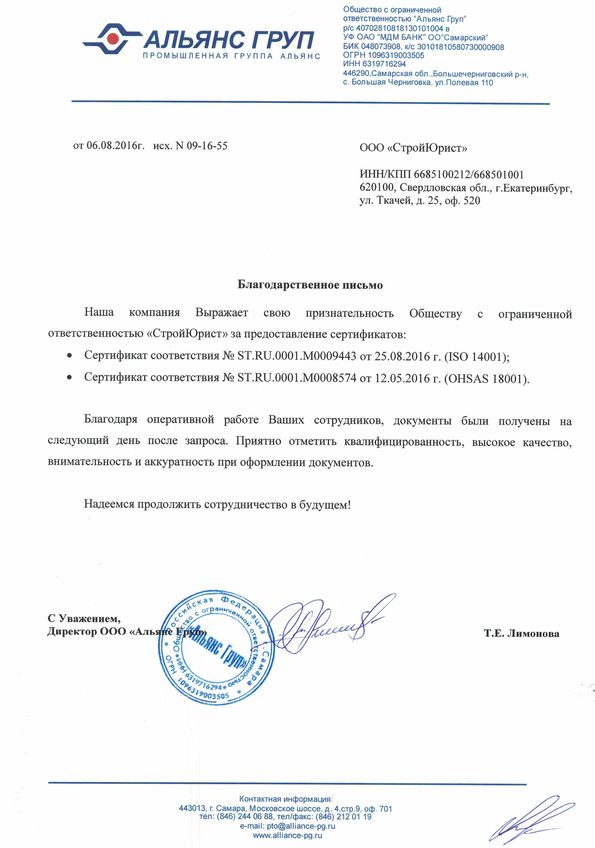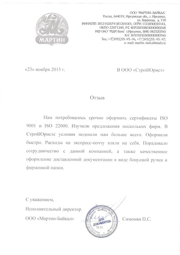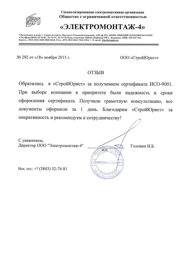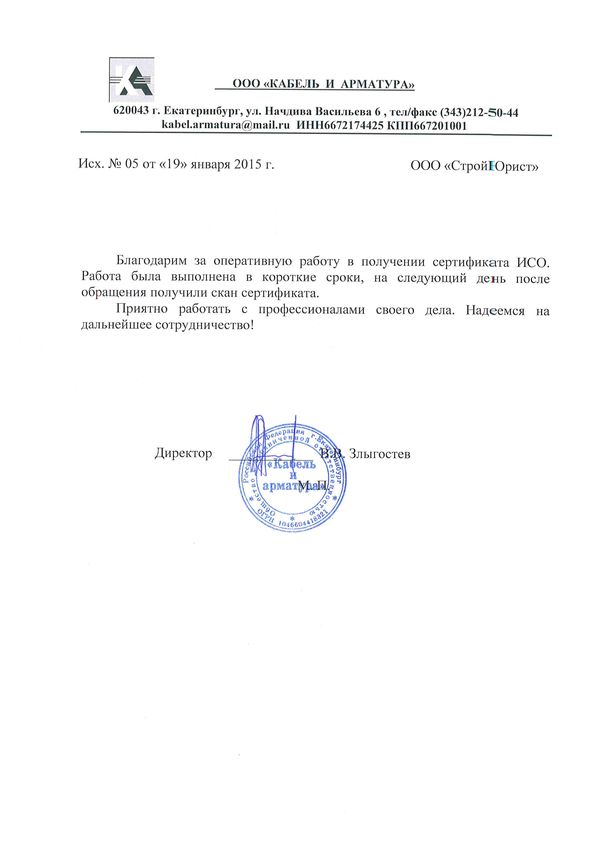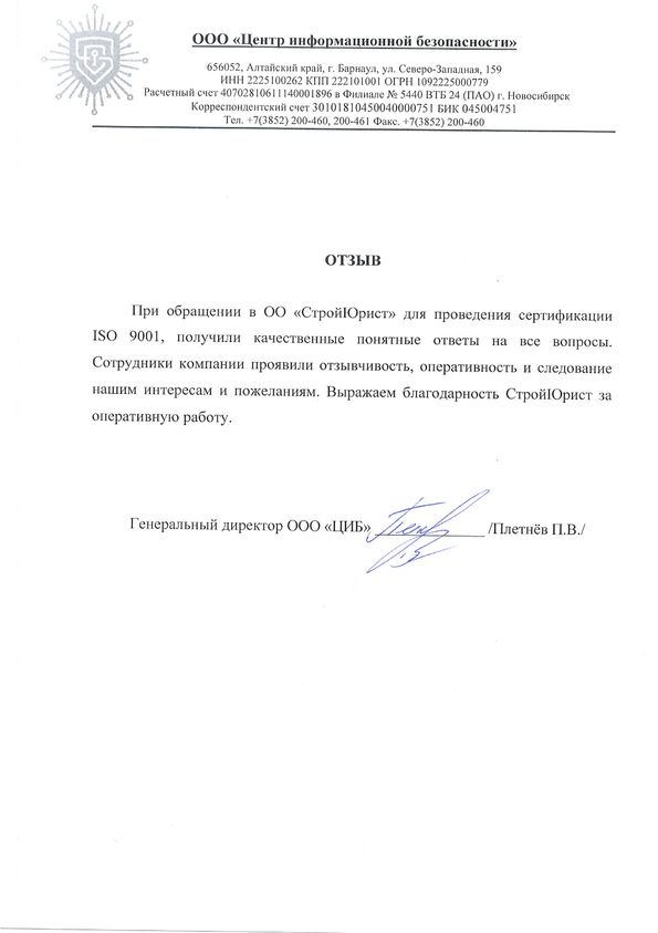 Отзывы клиентов "СтройЮрист" по ISO в Новороссийске