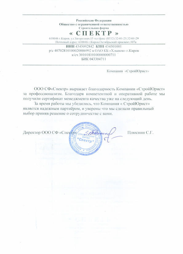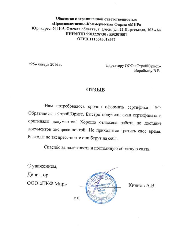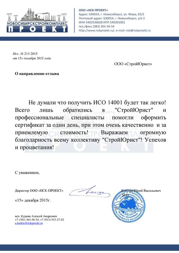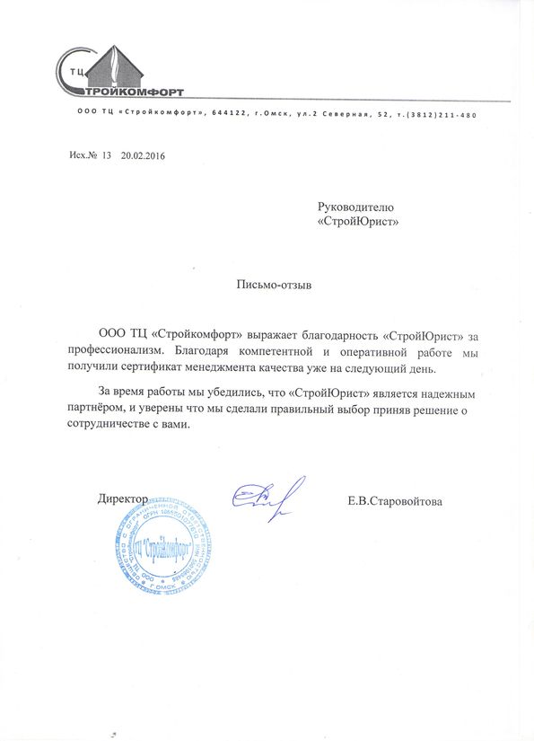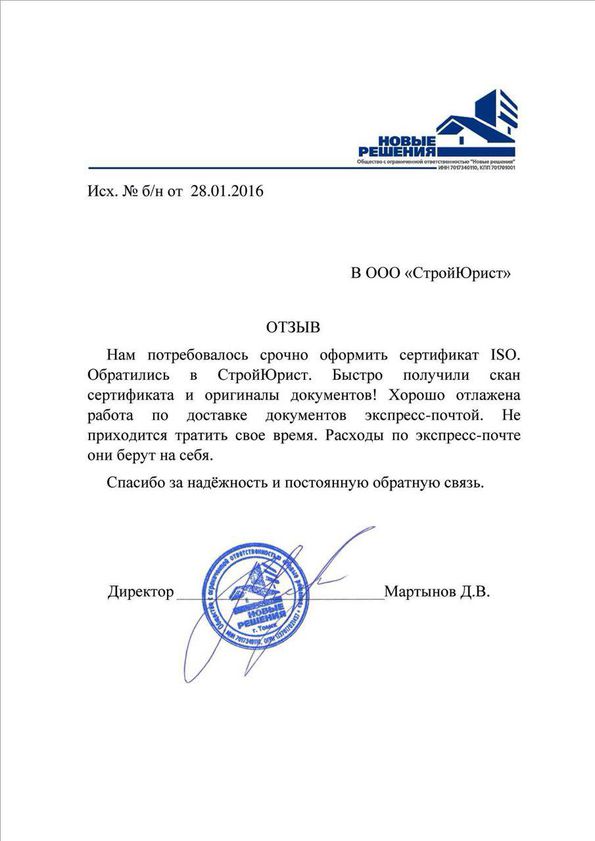 Отзывы клиентов "СтройЮрист" по ISO в Новороссийске