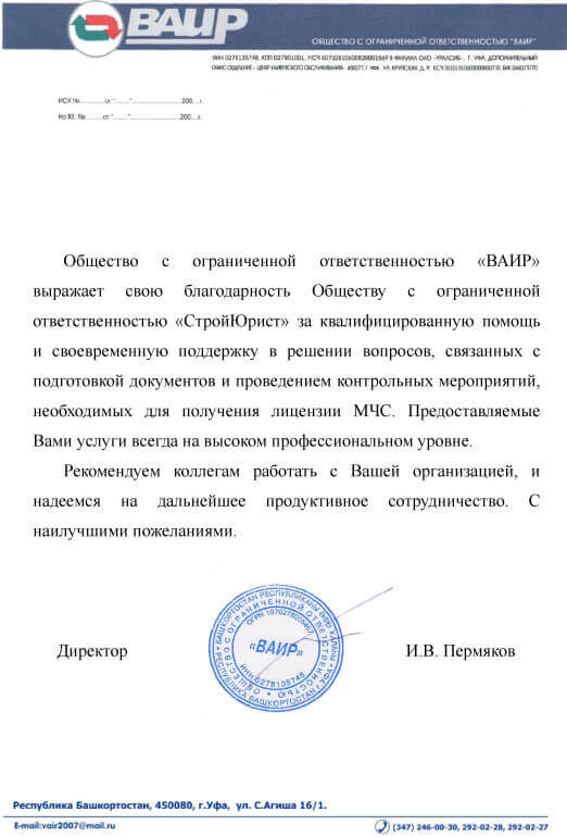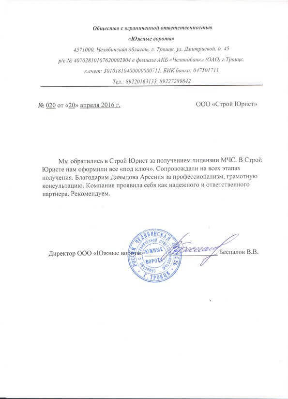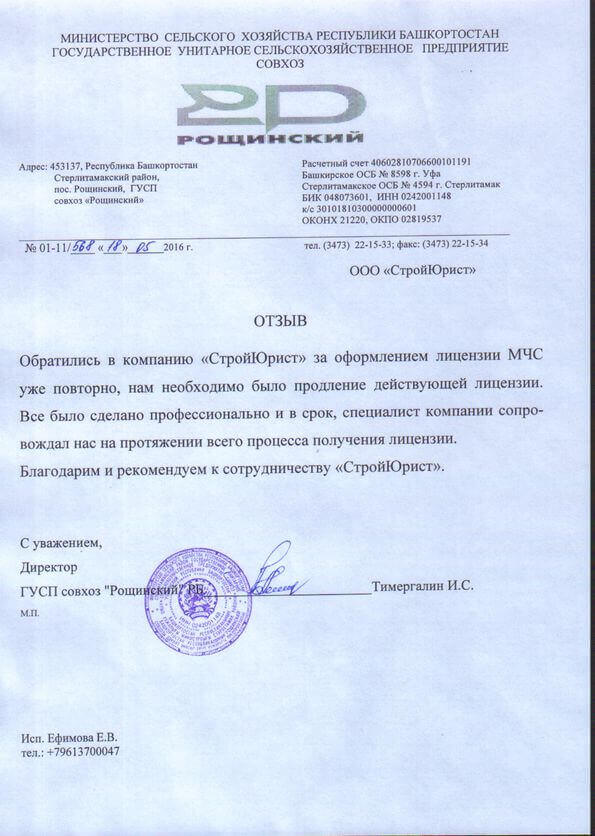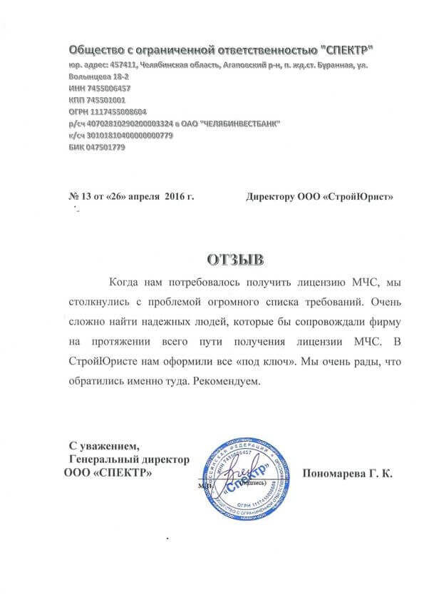 Отзывы клиентов "СтройЮрист" по лицензированию МЧС в Новороссийске
