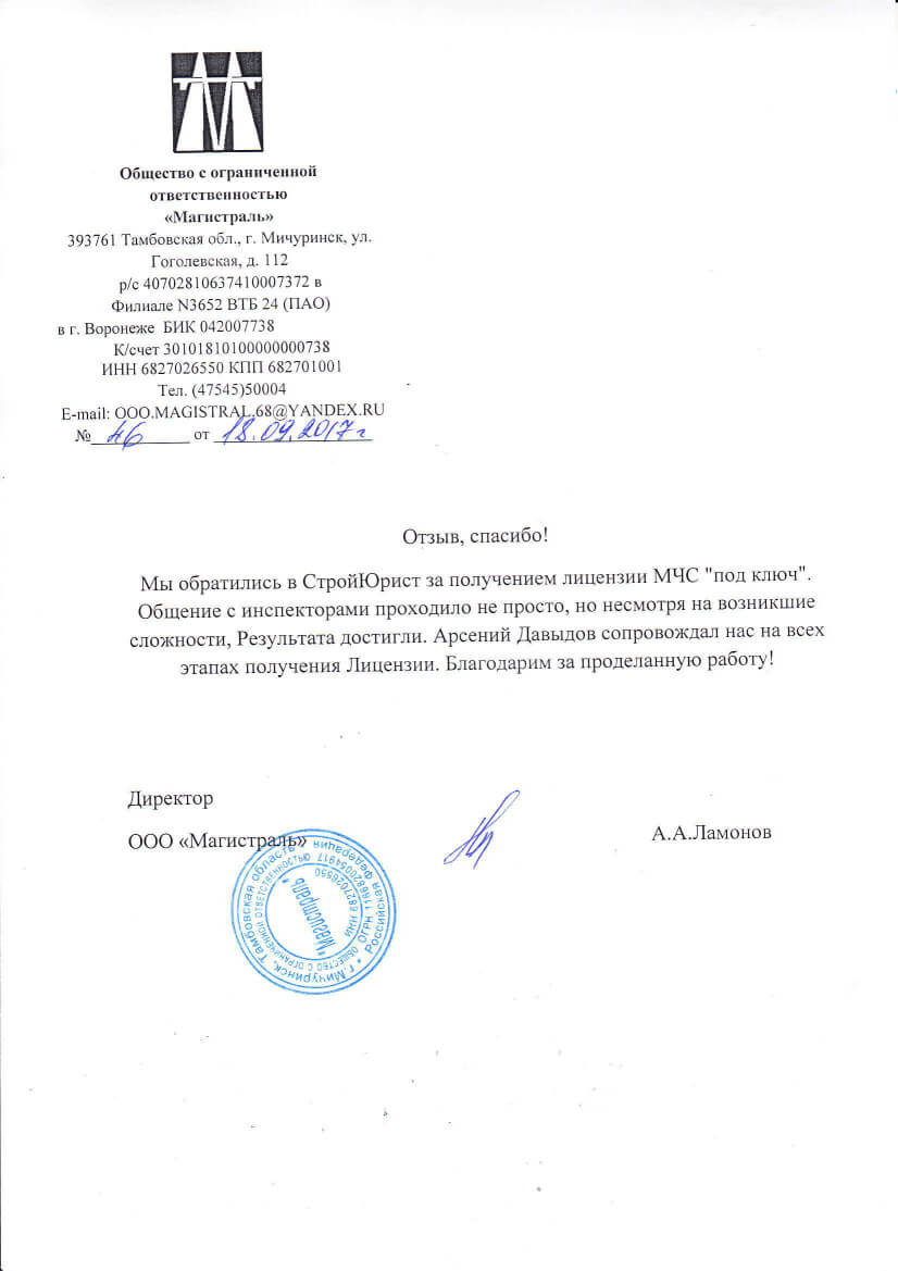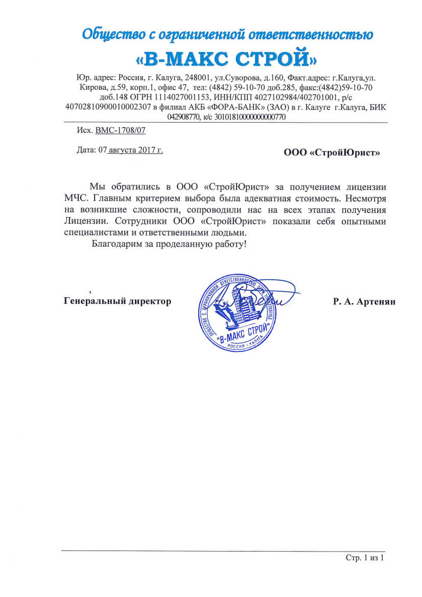 Отзывы клиентов "СтройЮрист" по лицензированию МЧС в Новороссийске