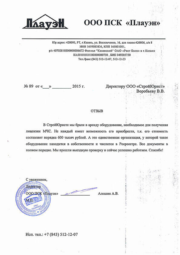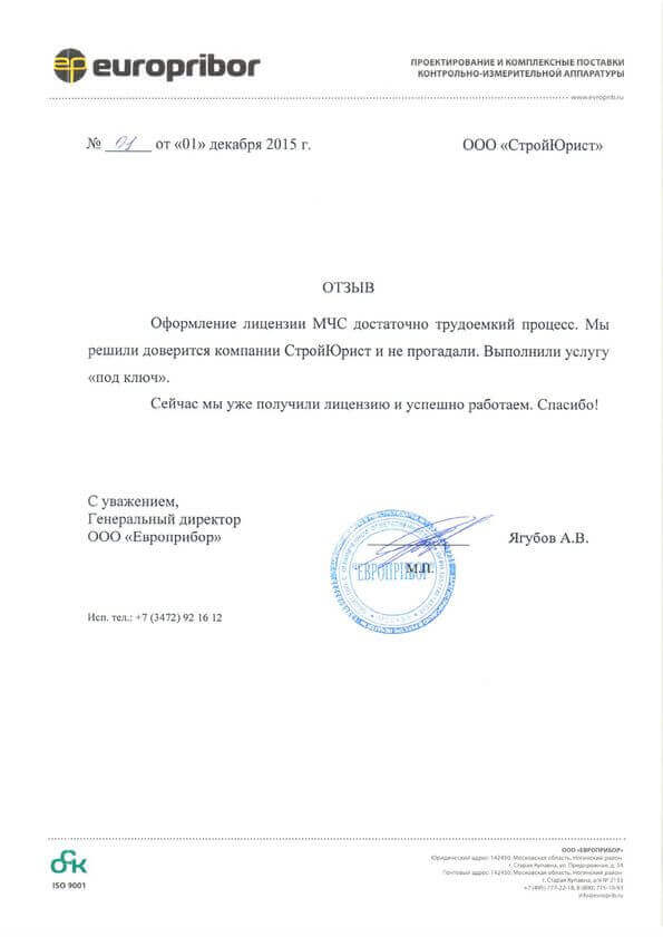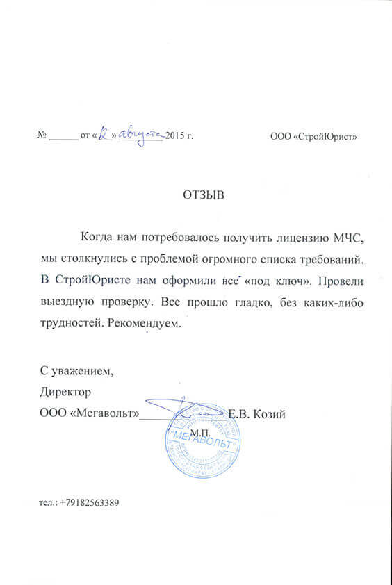 Отзывы клиентов "СтройЮрист" по лицензированию МЧС в Новороссийске