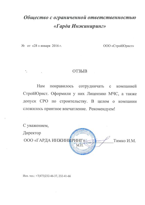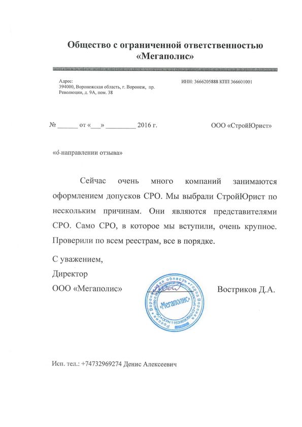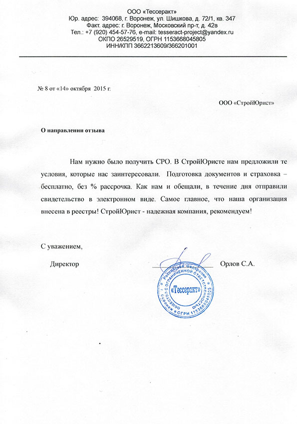 Отзывы клиентов "СтройЮрист" по вступлению в СРО в Новороссийске