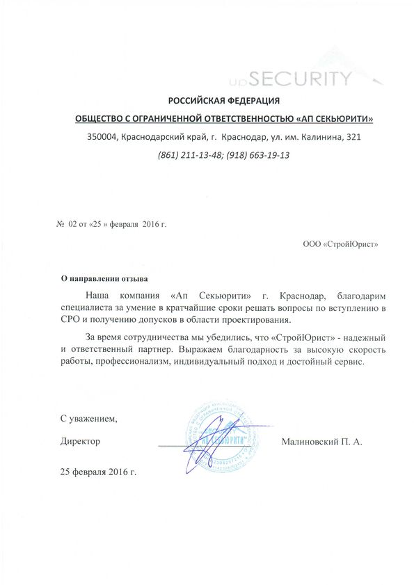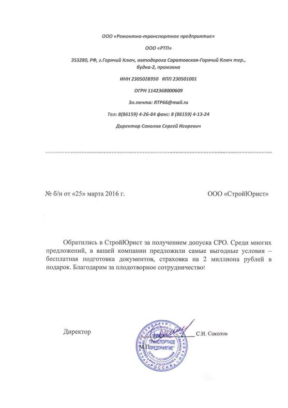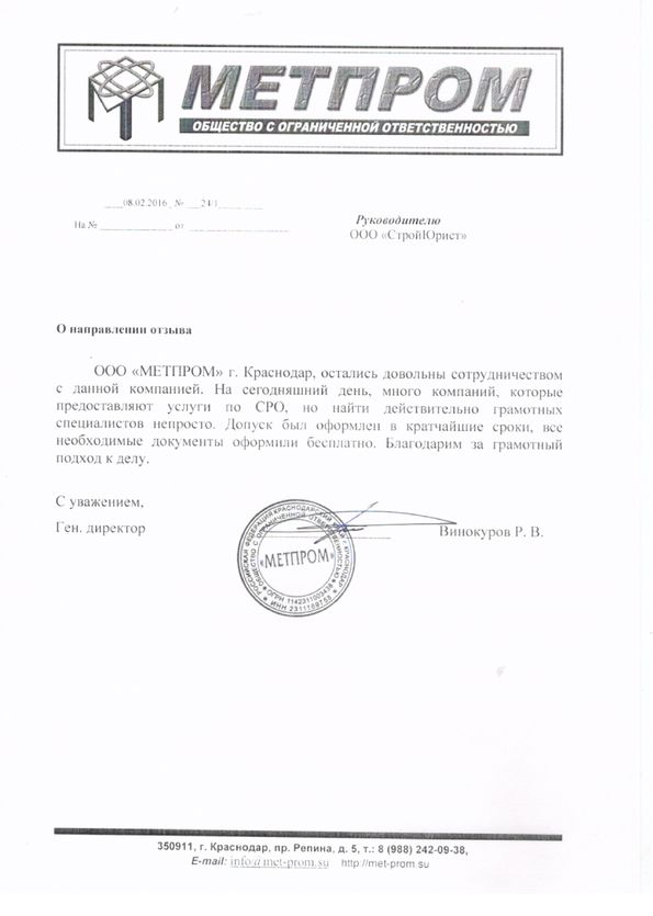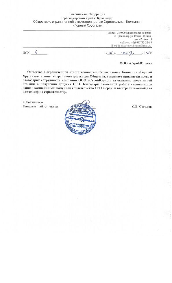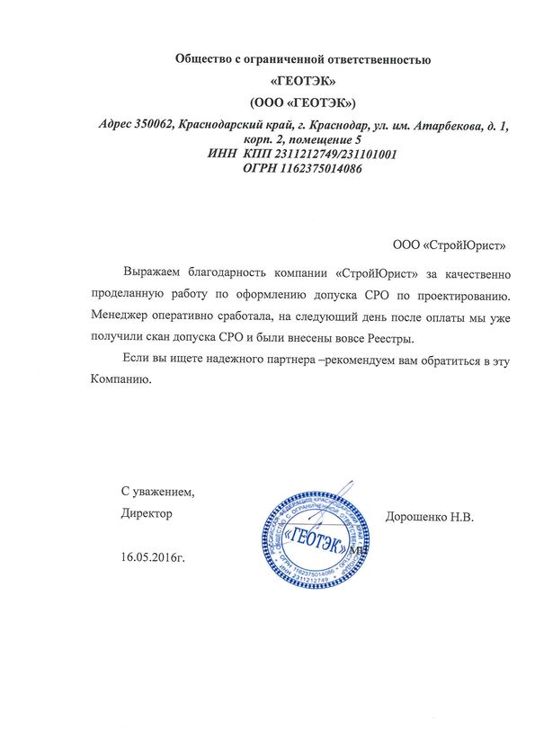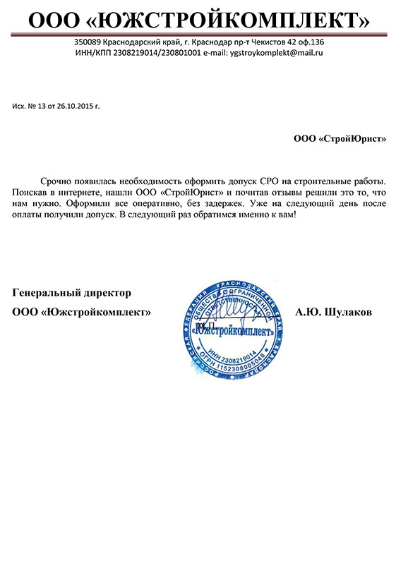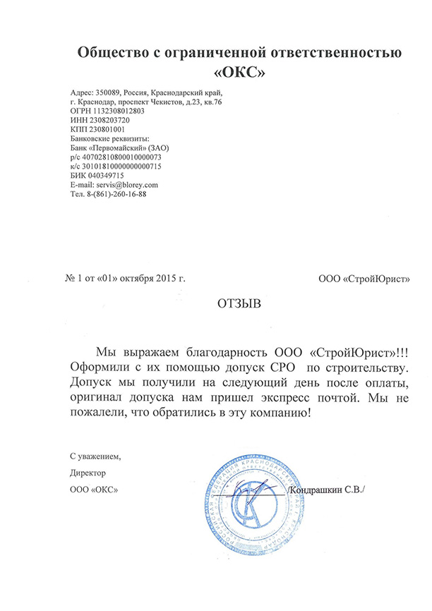 Отзывы клиентов "СтройЮрист" по вступлению в СРО в Новороссийске