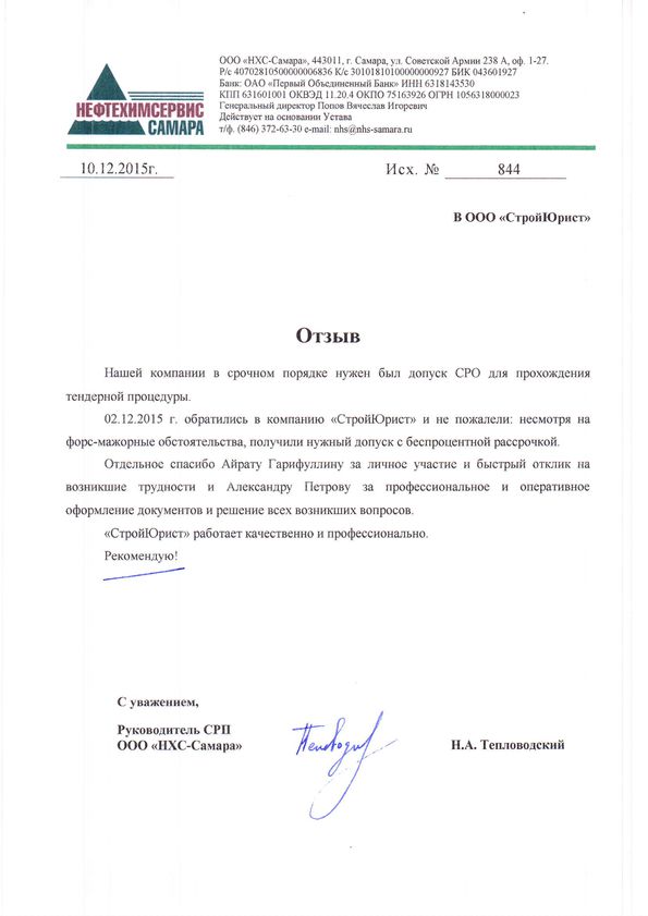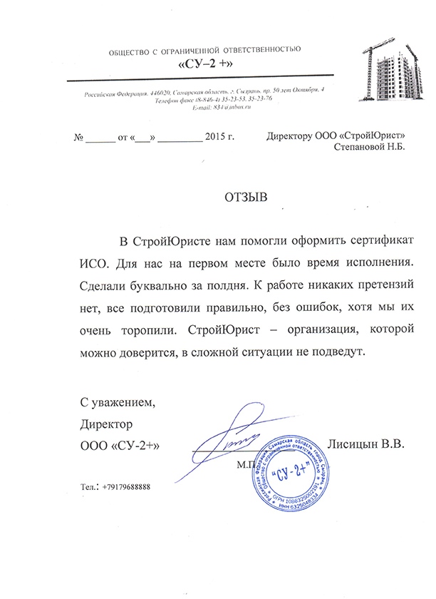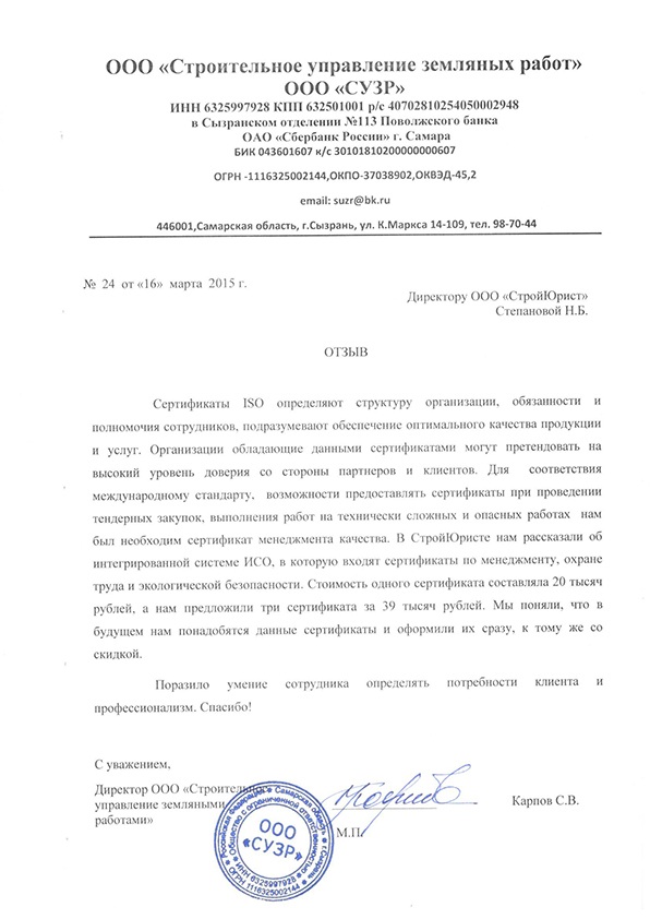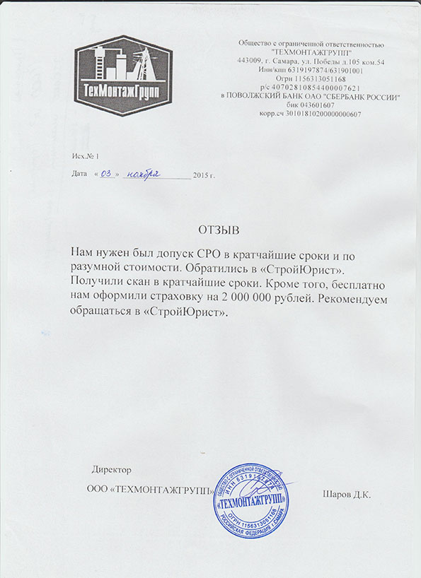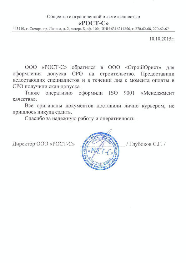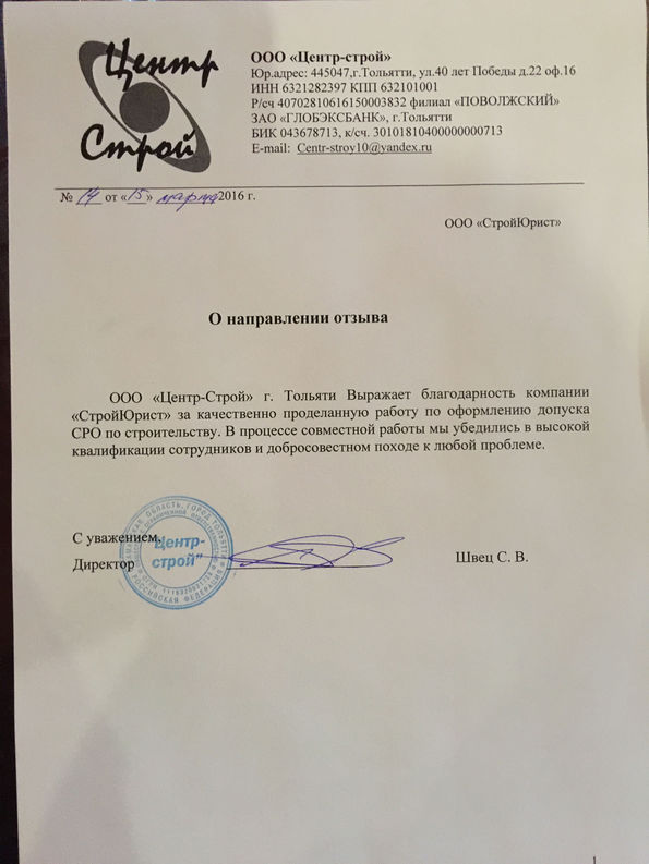 Отзывы клиентов "СтройЮрист" по вступлению в СРО в Новороссийске
