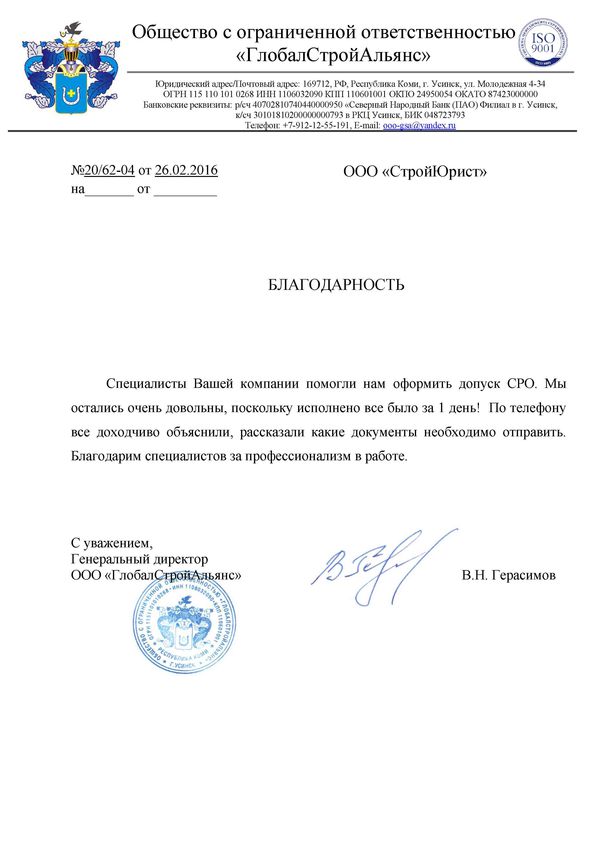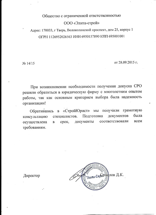 Отзывы клиентов "СтройЮрист" по вступлению в СРО в Новороссийске