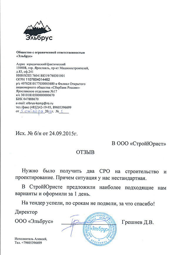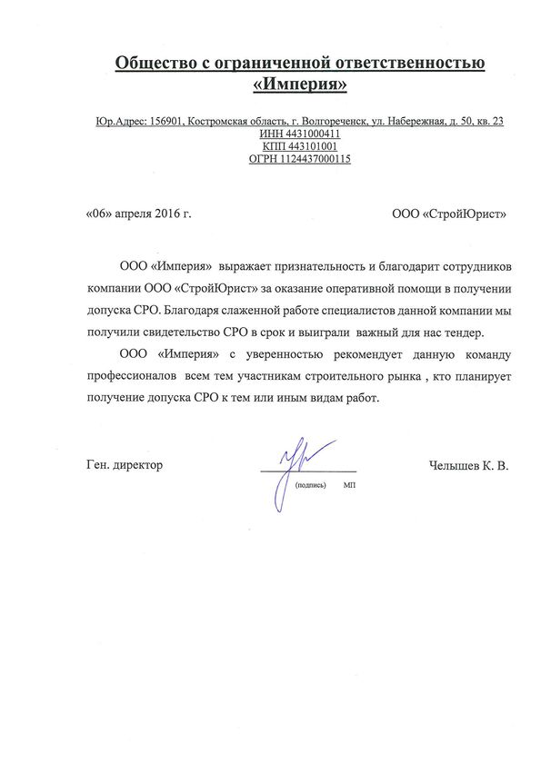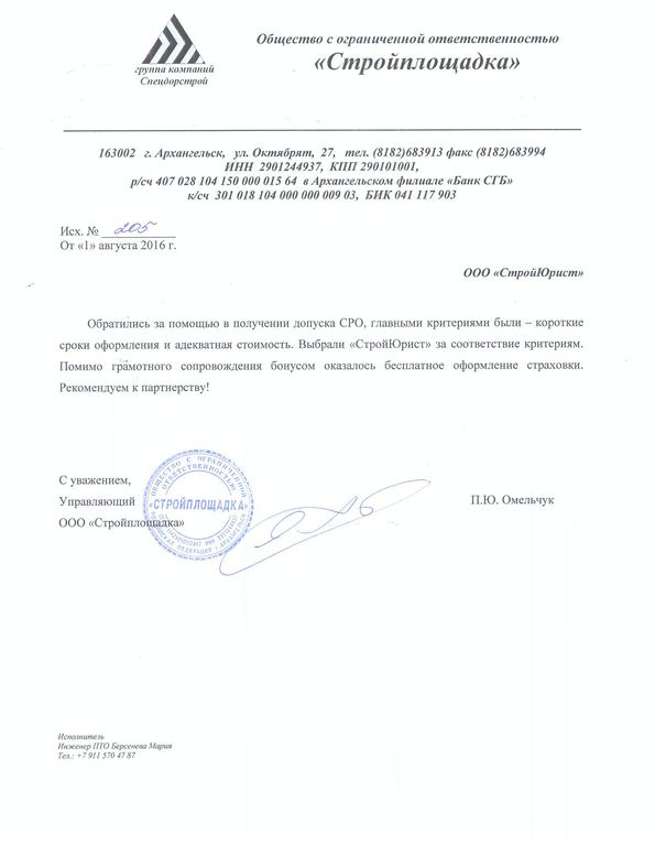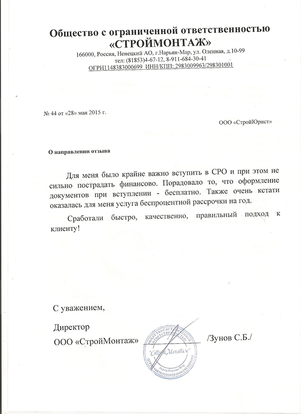 Отзывы клиентов "СтройЮрист" по вступлению в СРО в Новороссийске