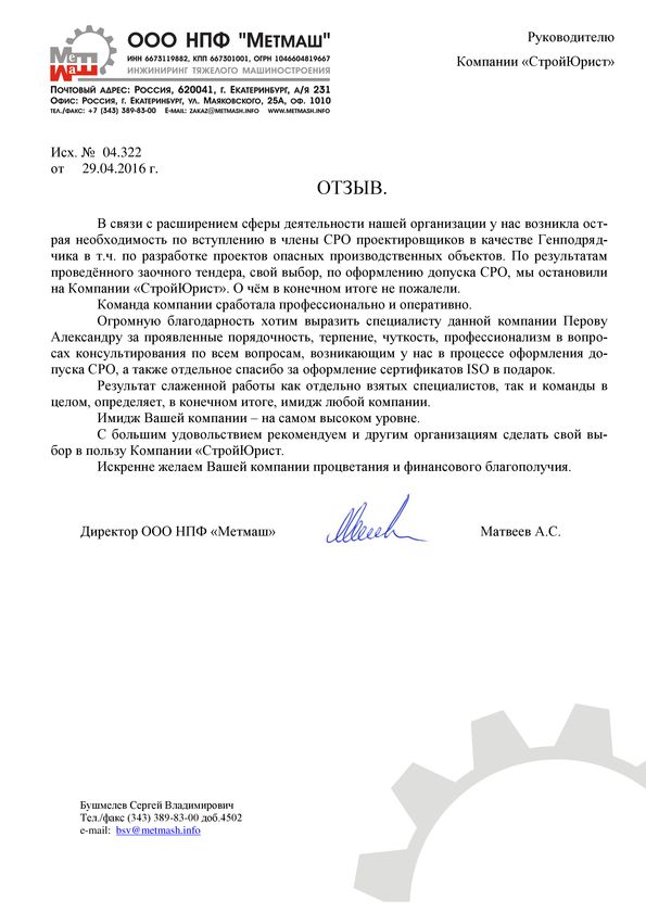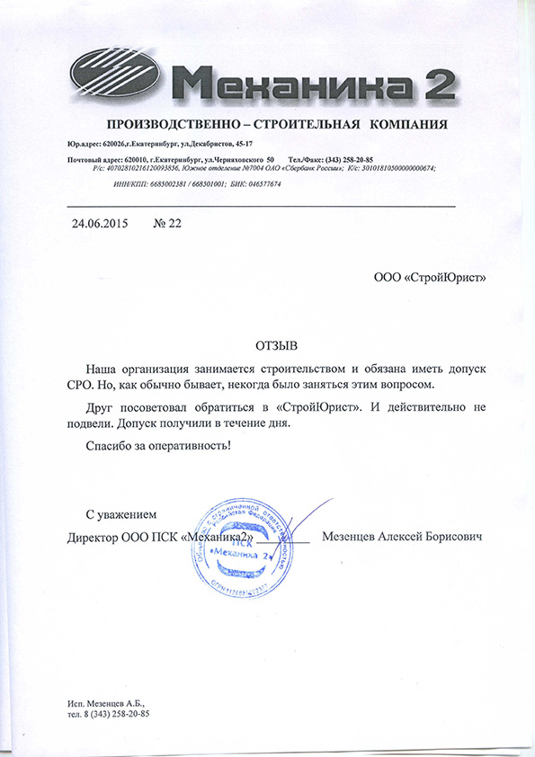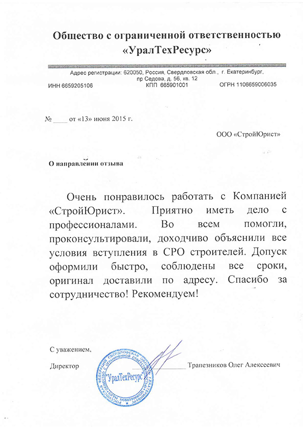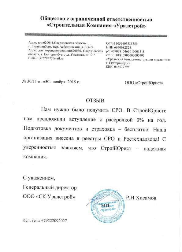 Отзывы клиентов "СтройЮрист" по вступлению в СРО в Новороссийске