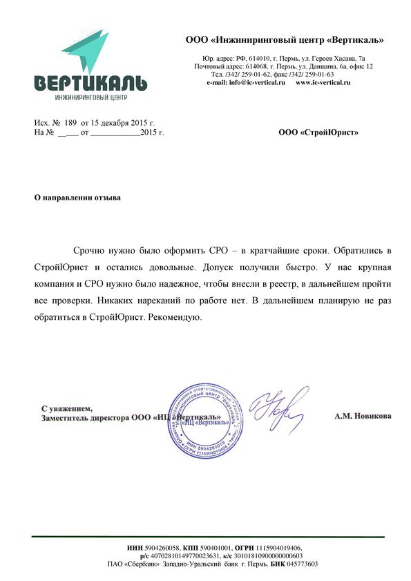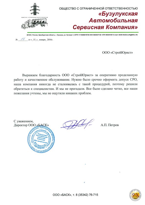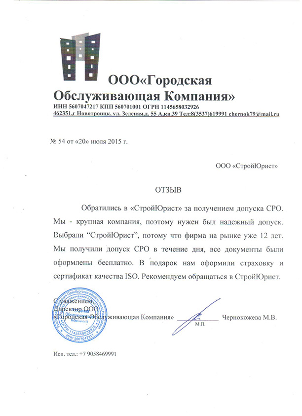 Отзывы клиентов "СтройЮрист" по вступлению в СРО в Новороссийске