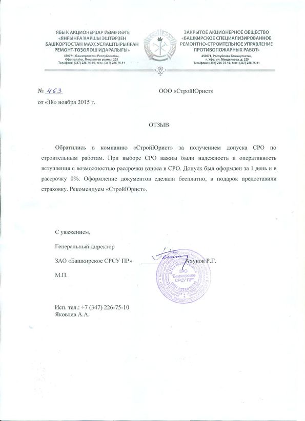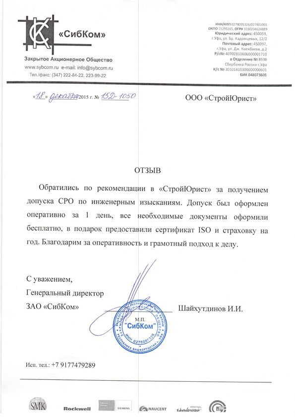 Отзывы клиентов "СтройЮрист" по вступлению в СРО в Новороссийске
