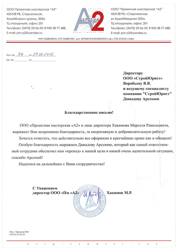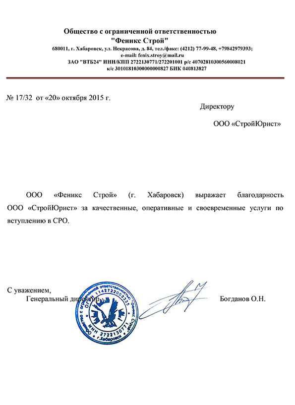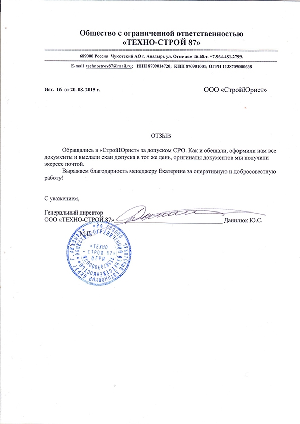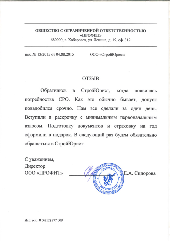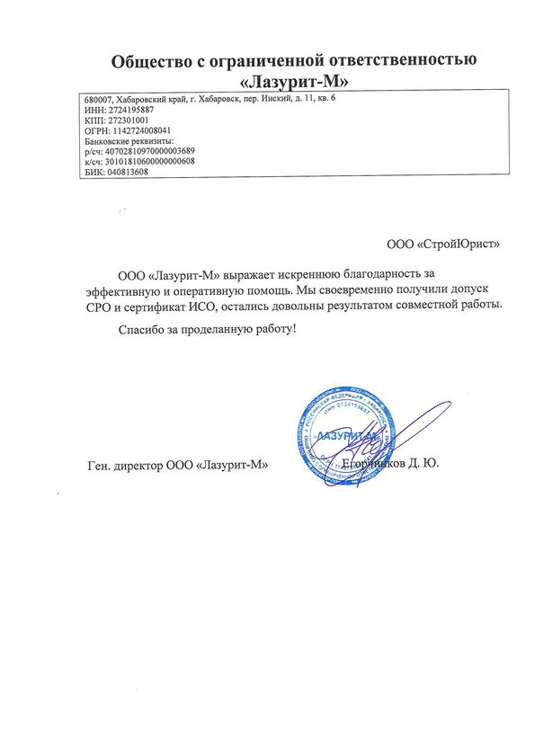 Отзывы клиентов "СтройЮрист" по вступлению в СРО в Новороссийске