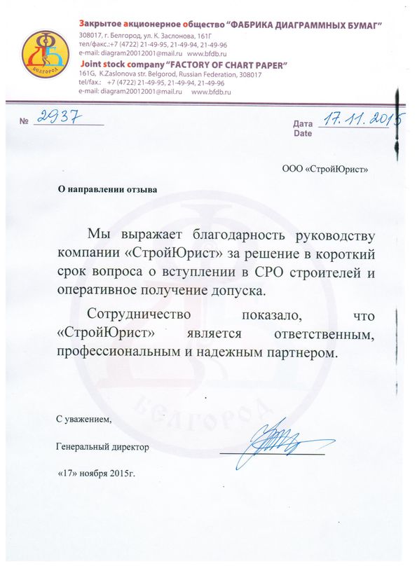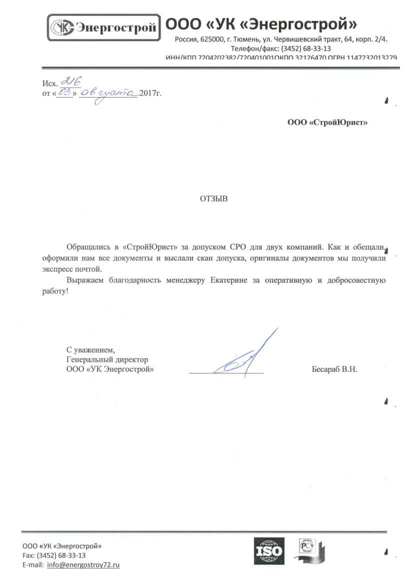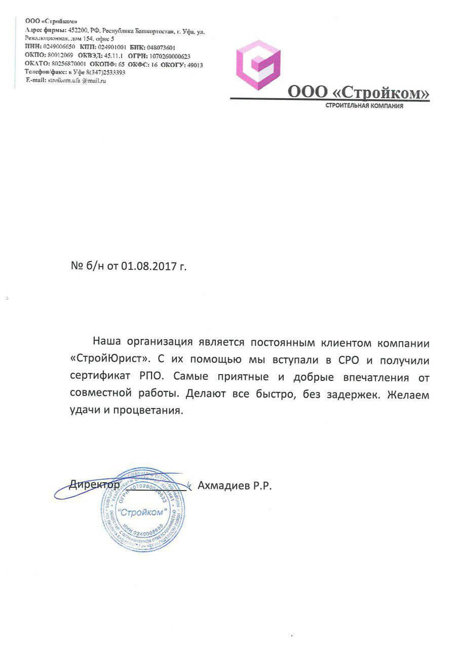 Отзывы клиентов "СтройЮрист" по вступлению в СРО в Новороссийске