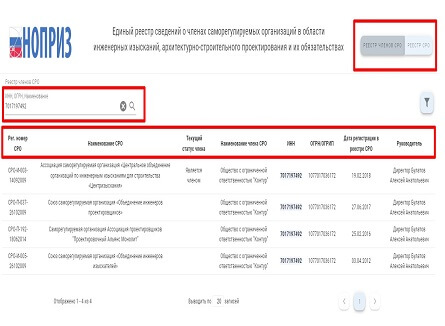 Разрешение на строительство могут не выдать, если у генпроектировщика отсутствует членство в партнерстве. Участие проверяется также на отраслевом портале НОПРИЗ в реестре членства в СРО. Принцип поиска аналогичен, но здесь вы увидите всего две вкладки: реестр членов СРО и реестр самих СРО.